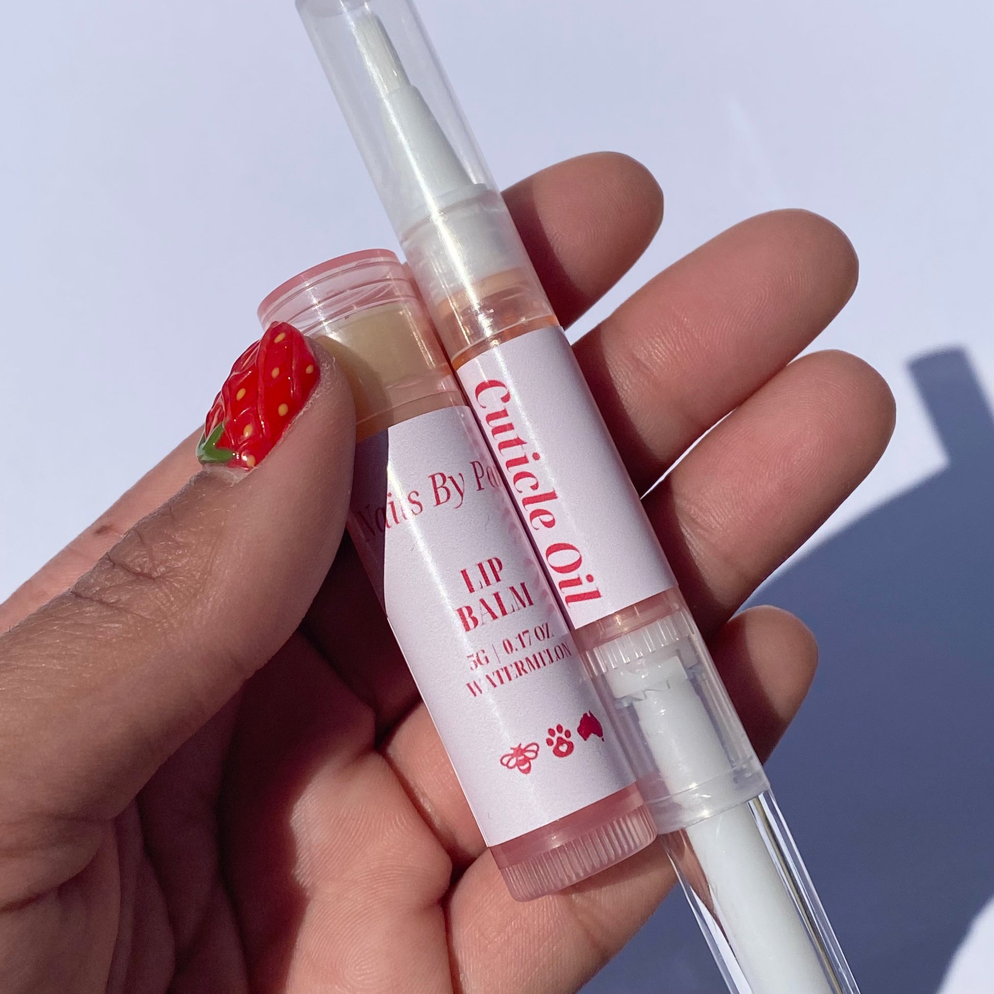 - Lip Balm Ingredients: Sustainably Sourced Bees Wax, Coconut Oil, Sweet Almond Oil, Jojoba Oil & Watermelon Flavouring
